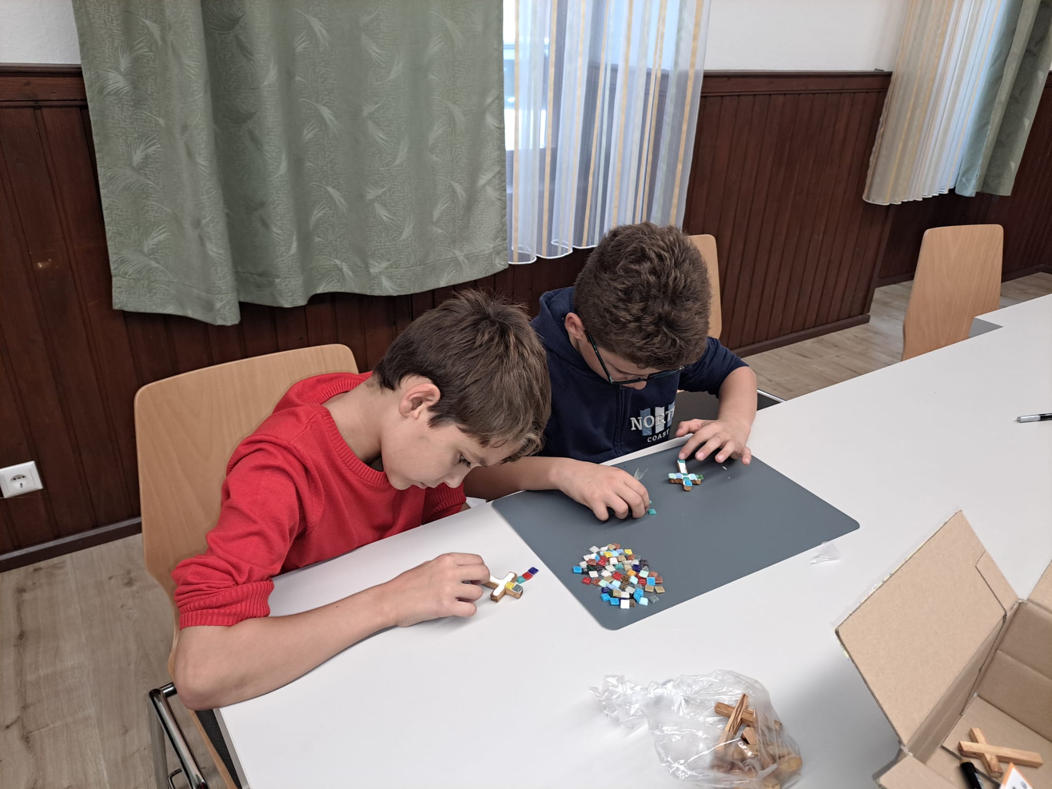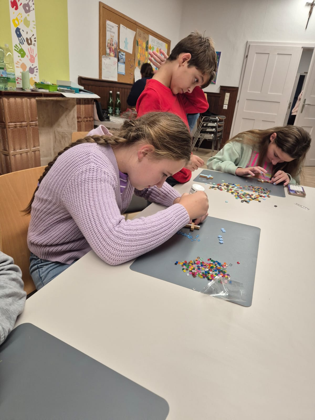 Unsere Minis haben sich heute im Jugendheim getroffen, um Kreuze zu basteln, die sie bei den Gottesdiensten tragen werden.