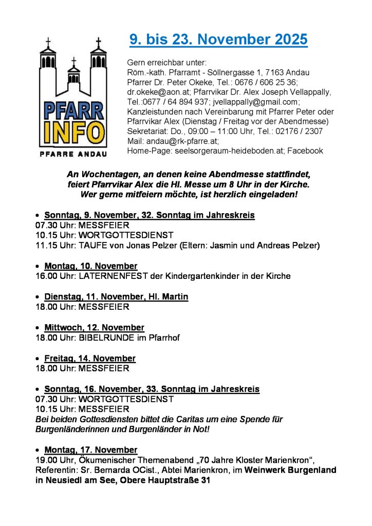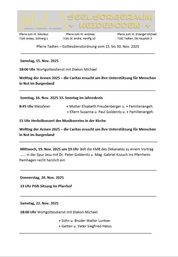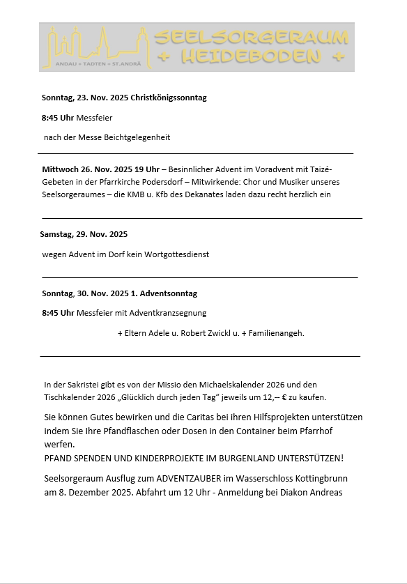 Der Seelsorgeraum Heideboden wurde in einem Artikel des Martinus, der Zeitschrift unserer Diözese , porträtiert. Unter folgendem Link könnt Ihr Gabriels Gedanken zur Entwicklung des Seelsorgeraumes lesen, was wir bisher schon erreicht haben und wie er sich die weitere Entwicklung des Seelsorgeraums vorstellt. Er ist stolz auf das, was wir in allen drei Pfarren schon gemeinsam erreicht haben, nur durch sein Tun allein wäre es nicht gegangen. Und er ist überzeugt, dass der weitere gemeinsame Weg gut gelingen wird. https://www.meinekirchenzeitung.at/burgenland-martinus/c-kirche-hier-und-anderswo/wir-sind-als-seelsorgeraum-eine-gemeinschaft_a37098