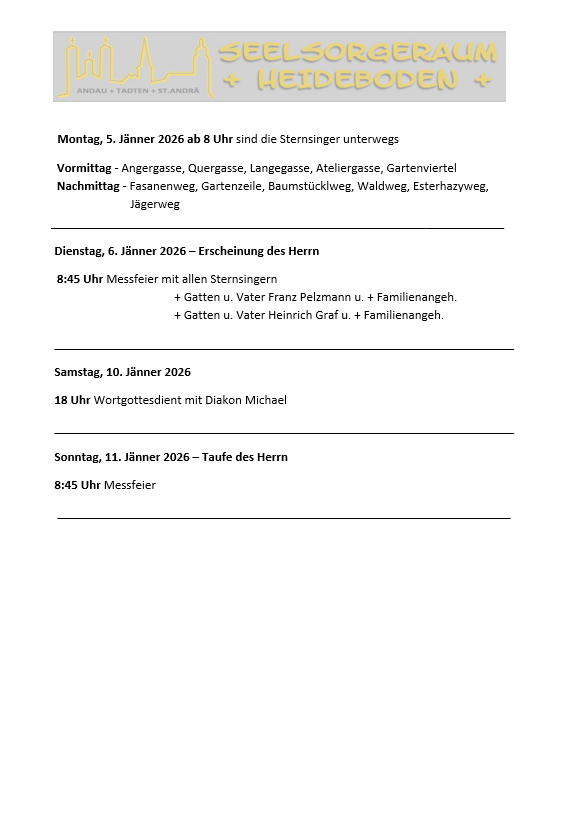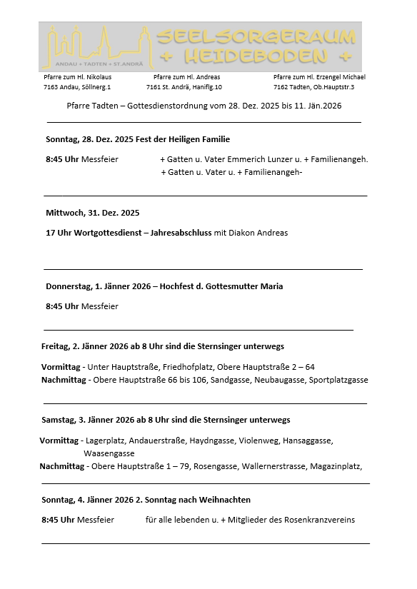 Gottesdienstordnung vom 28.12.2025 – 11.1.2026